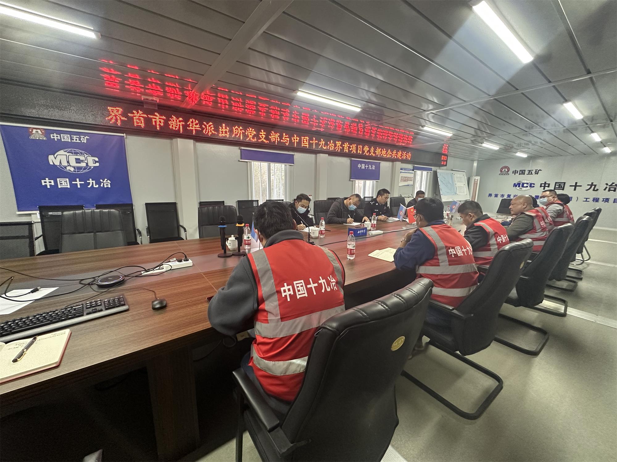 雙方支部黨員首先在項目現(xiàn)場進行觀摩,界首市新華派出所同志對現(xiàn)場安全文明施工細節(jié)表示肯定。在隨后的座談會上,界首項目黨支部書記首先領學了黨的二十大報告,詳細宣貫了報告中有關推進國家安全體系和能力現(xiàn)代化,堅決維護國家安全和社會穩(wěn)定的內容。新華派出所黨支部書記領學了習近平總書記關于總體國家安全觀重要論述,講解了當?shù)匕踩芾項l例與近幾年的生產安全事故,為項目部生產安全發(fā)展提供了具有針對性的意見建議。活動最后,雙方黨支部就未來支部共建實現(xiàn)長期互動達成了共識,紛紛表示要以此次聯(lián)建共建活動為契機,進一步加強支部間的黨建和業(yè)務工作的互聯(lián)互通。