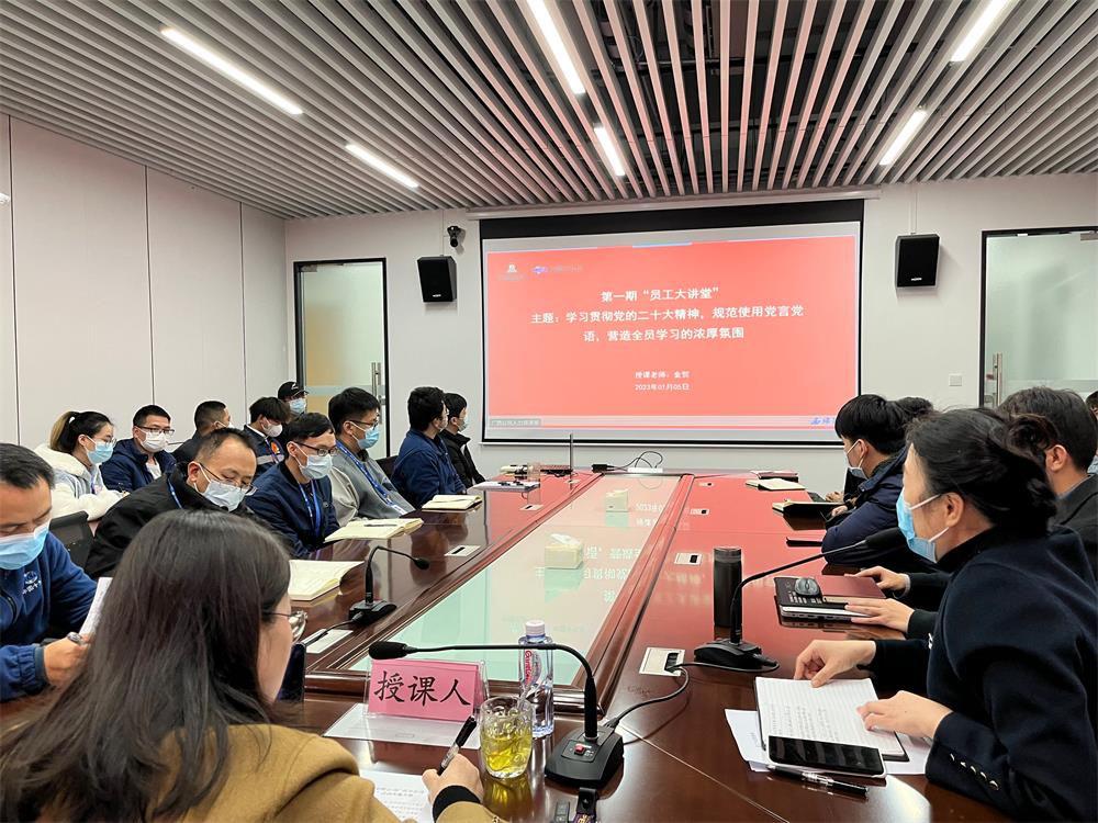 黨委書記結(jié)合黨的二十大報告對黨的建設(shè)新要求,立足實際工作中的細(xì)節(jié),對“學(xué)習(xí)貫徹黨的二十大精神”和“黨建業(yè)務(wù)基礎(chǔ)知識提示”兩個板塊進(jìn)行詳細(xì)講解。過程中主題鮮明引導(dǎo)廣大員工用好“黨言黨語”、扎實推動黨建工作規(guī)范化標(biāo)準(zhǔn)化,內(nèi)容精彩翔實,現(xiàn)場不時響起熱烈的掌聲。最后,黨委書記對開展好“員工大講堂”提出要求,領(lǐng)導(dǎo)班子帶頭講、部門負(fù)責(zé)人必須講、邀請專家專題講、鼓勵青年及所有員工踴躍講,進(jìn)一步示范帶動全公司形成濃厚的學(xué)習(xí)氛圍。